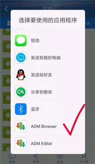 8、找到你所需的软件、视频或zip文件,长按该文件,选择“打开为音频”,接着选中ADP PRO,最后点击“开始”。