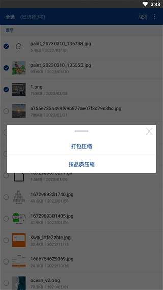 4、可以选择打包也锁和按品质压缩,由于是要控制大小,所以选择第二个