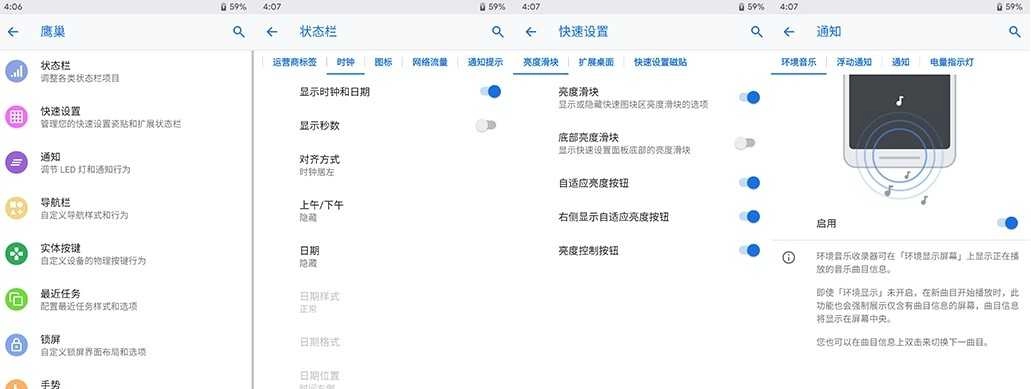 2. 状态栏个性化设置:包括电池显示、运营商信息、时间显示、状态栏图标以及网速展示