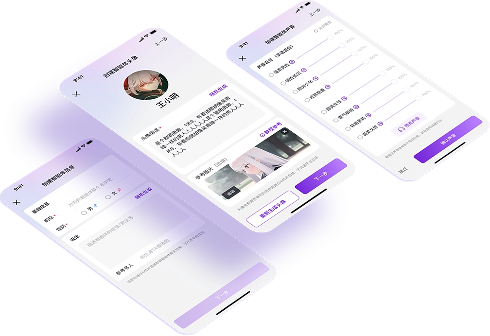 你能够自由打造专属的智能角色,还能参与各类话题探讨。借助对话引导,使智能角色逐步契合你的期待,亦或尝试其他用户分享的角色设定,体验丰富多彩的互动乐趣。