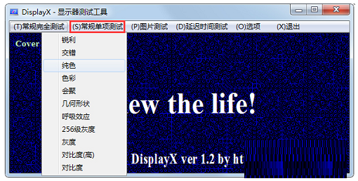 1、在本站下载displayx显示器测试工具后,直接打开,能够看到软件包含常规完全测试、常规单项测试以及延迟时间测试等。