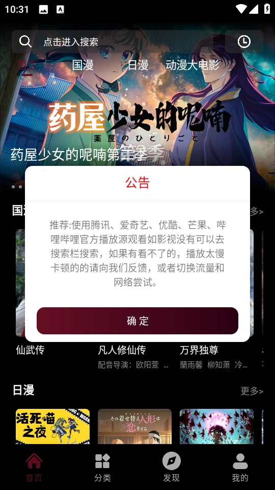 2. 成功进入主页后,便能看到各类不同分类的动漫资源。