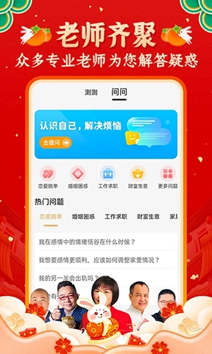 4、婚姻与爱恋:借助八字以及紫微预测,化解婚姻情感方面的各类问题,同时提供专业的匹配合婚测试服务。
