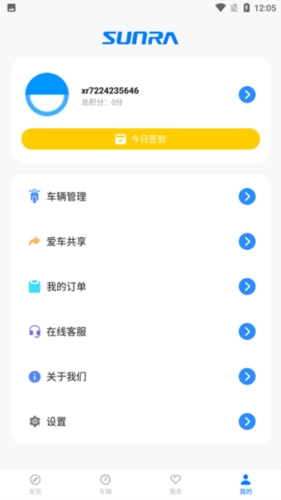 4、点击“我的”,在此处能够实现车辆管理、爱车共享、订单查看等功能。