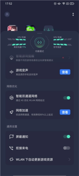 6、下方还向我们展示了游戏的CPU性能、GPU性能以及信号强度。