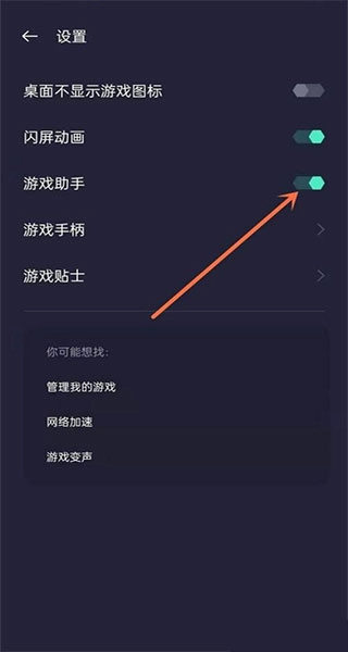 3、在设置页面把游戏助手打开。
