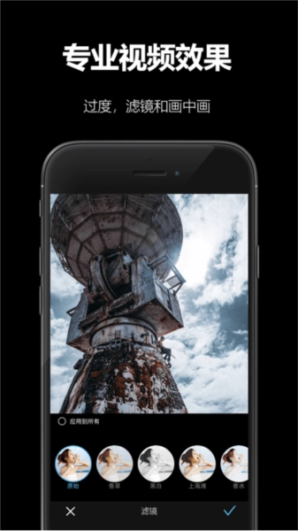 支持一键选取独特特效、酷炫过渡动画以及优美背景音乐,把普通素材转变为值得分享的精彩视频。
