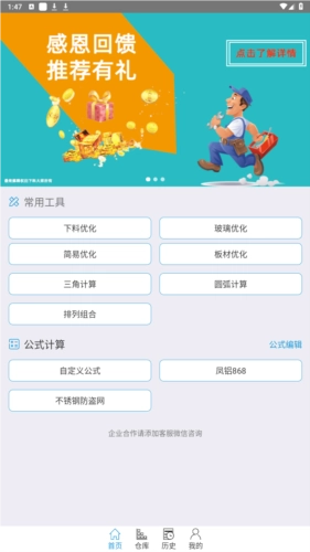 1. 首页包含了所有优化计算、公式计算等功能的入口。