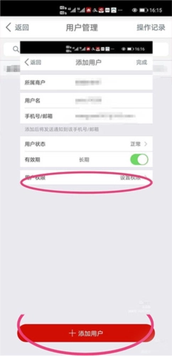 2、进入“我的→用户管理→添加用户”路径,在此处输入操作员的用户名(可自行编辑)。