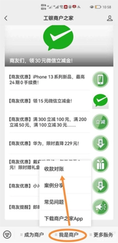 8、绑定“工银商户之家”公众号的操作方式与主号一致。