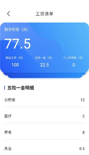 3、工资计算器:能快速算出工资收入状况,税金清晰呈现。