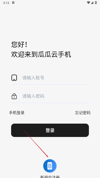 瓜瓜云手机如何进行注册登录 1. 点击新用户注册;