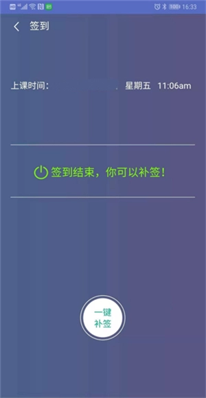 3、签到结束后,点击“签到”按钮,还能实现“一键补签”,不过补签结果将显示为“迟到”。此外,学生的签到情况会展示在教师电脑的投屏上。