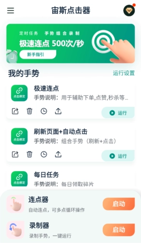 宙斯点击器安卓版为用户准备了丰富多样的模拟自动点击工具,同时具备屏幕录制器功能。借助手势录制,用户能够复制各类手势并使其循环运行,轻松完成各种重复性操作。