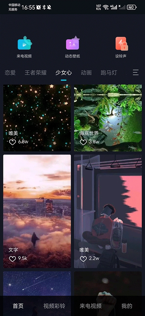 当下备受追捧的是美图与时尚铃声的绝佳融合,动态界面美到极致。
