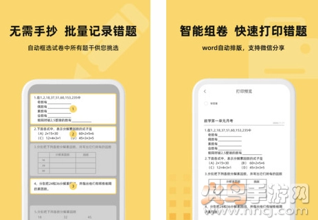 【分享或打印】能把选中的错题迅速组卷,并自动在word中完成排版,还能直接连接打印机进行打印。同时支持将word分享至QQ和微信,方便随时把试卷分享给他人。