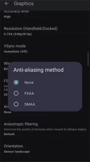 3、为获取更高性能,分辨率一直设置为较低的0.75x 。要是您用的是低端手机,0.5x会更为适宜。