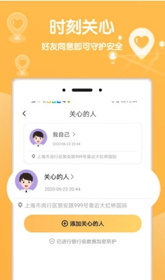 1. 当添加了关心的人之后,便能够在定位通行证里查看TA的位置以及轨迹。