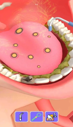 1、在游戏里,玩家要面对形形色色的挑战与谜题,像牙齿上附着的污垢,就需玩家加以清洁。