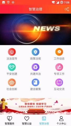 4、智慧治理页面能帮你知晓法制宣传、社会创新等关键信息,使你随时关注社会动态。