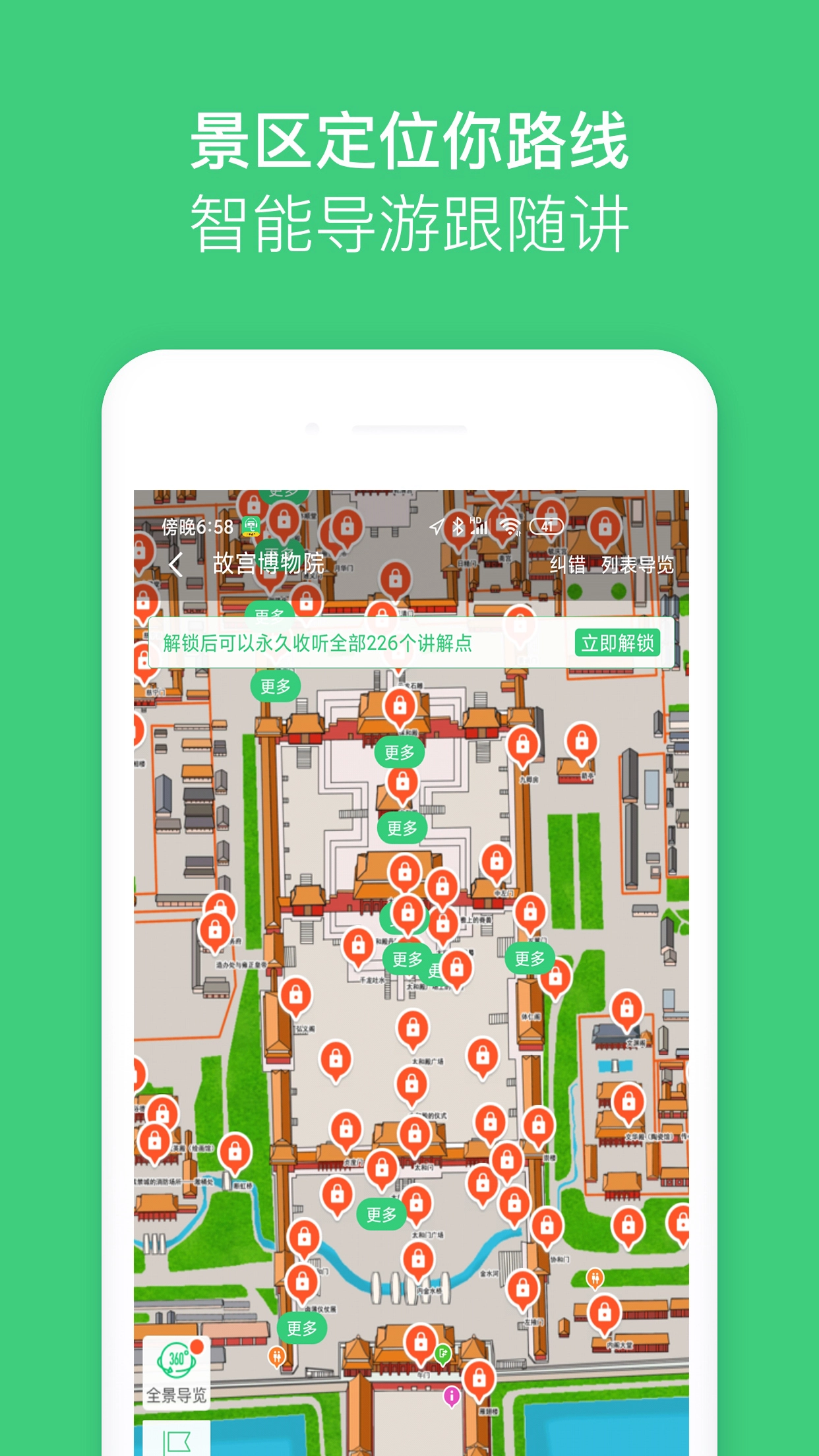 专利微定位纠偏自动触发讲解功能:借助自主专利的GPS与微定位景区导览技术,达成在游览景点过程中,游客走到何处就能听到对应讲解的效果。