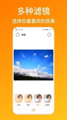 3、为你提供丰富多样的自定义过滤器。在这里,你能够随心挑选喜爱的颜色与效果,仅需简单的一次点击,就能轻松为你的照片注入满满的时尚气息。