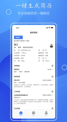 一键生成简历:仅需输入关键信息,即可一键生成。