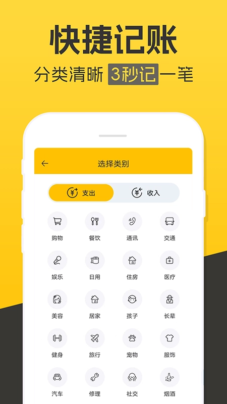 1、提供丰富多样的记账类别供您选择,涵盖美容、出行、购物、医疗、住行等各类别。