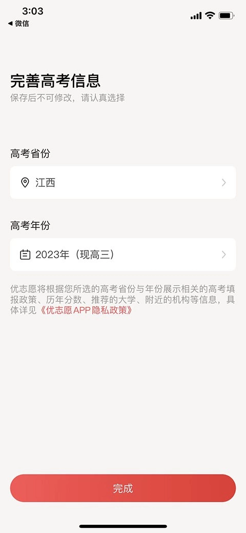 3、接下来,我们填写高考所在省份以及年份。(此处以江西为例)