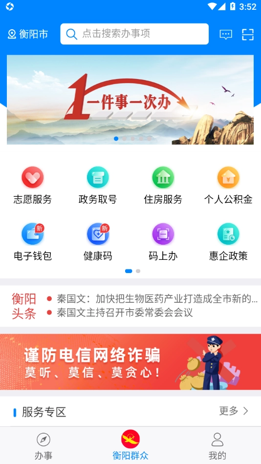 “衡阳群众”是专门为衡阳打造的政务生活移动服务平台。该平台设有“办事”“衡阳群众”“我的”这三大板块,能够助力为衡阳提供更优质的服务,也能帮助用户畅享更美好的衡阳生活。