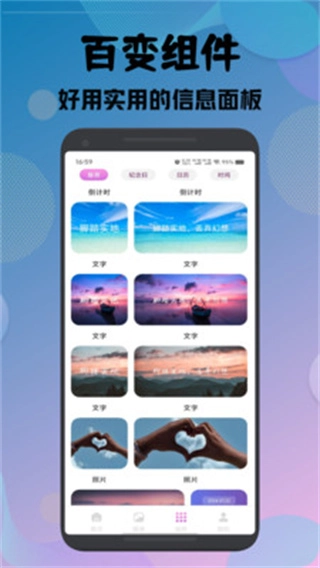 3、百变组件,实用好用的信息面板,小组件资源极为丰富多样。