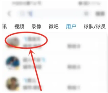 先进行用户名搜索,接着点击顶端“用户”这一选项。