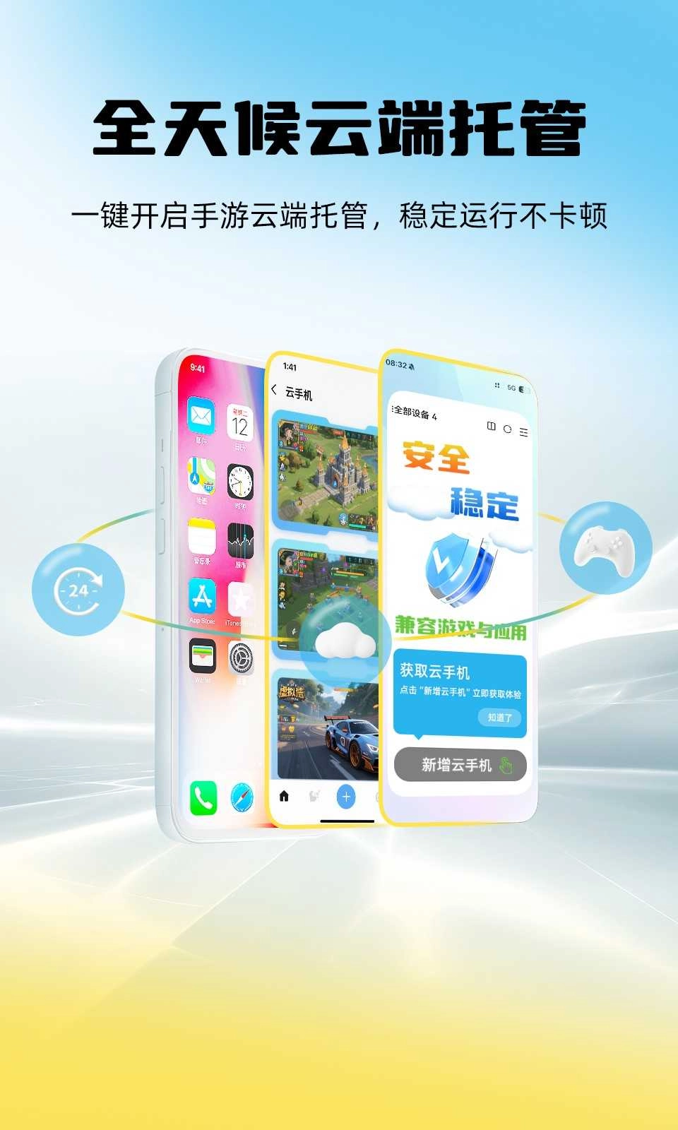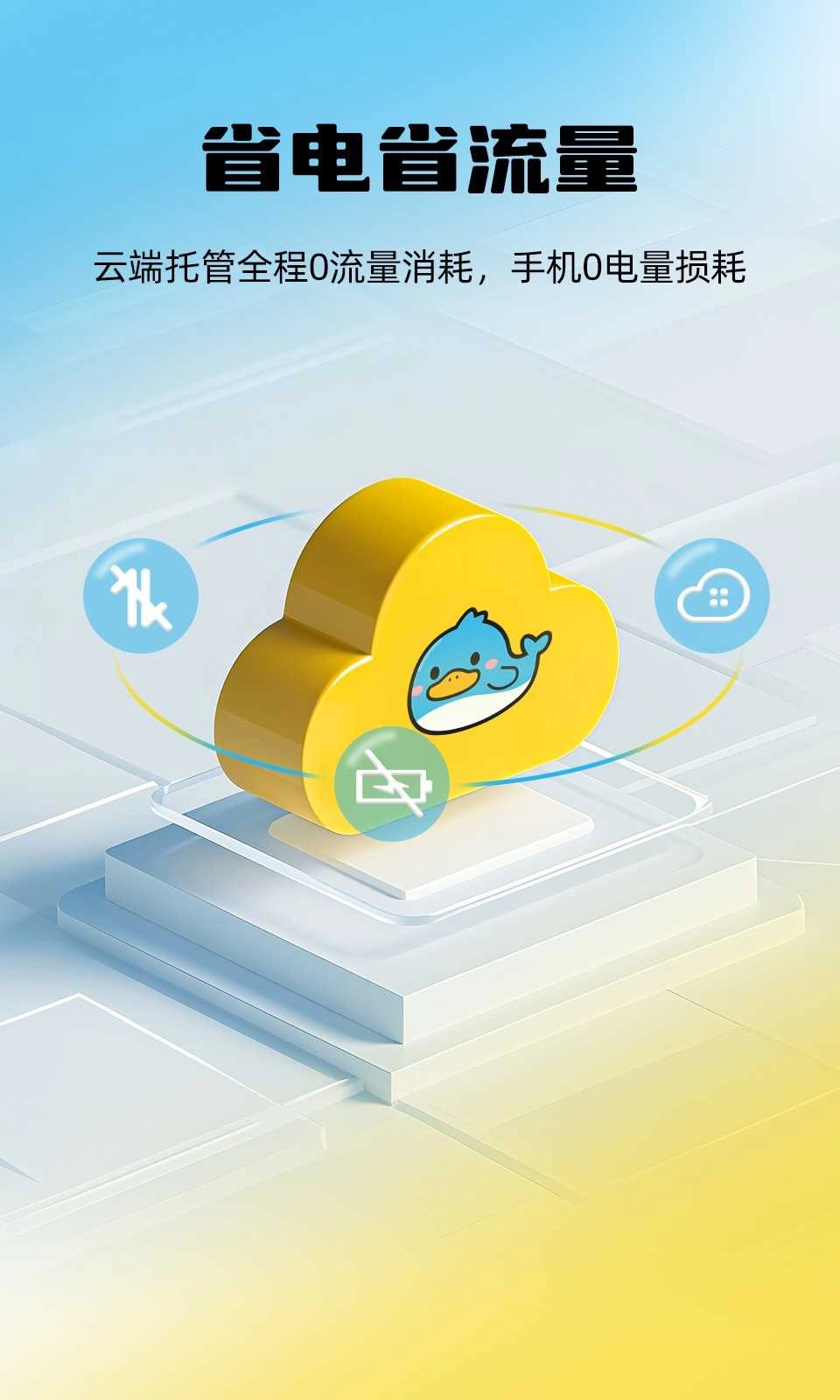2. 无需担心耗费您手机电量,7x24小时持续在线,永不掉线,无论何时何地,都能为您执行云端托管任务。