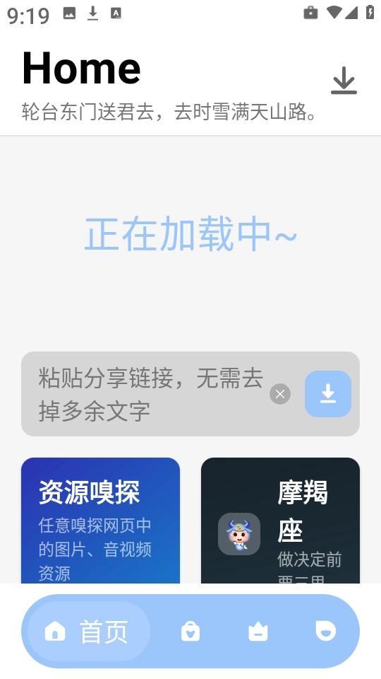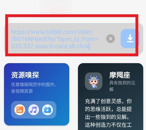 2、随后将视频链接复制并粘贴至首页的搜索框中,具体位置如图所示。