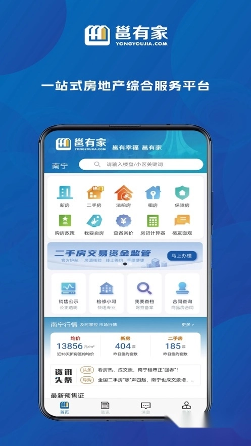 邕有家最新版本是专为南宁打造的房产服务平台,属于一站式房地产综合服务平台。这里有着海量实用功能等您来体验,用户能依据自身需求尽情尝试。其界面简洁直观,使用极为便捷。要是您对这款软件感兴趣,不妨点击一试!