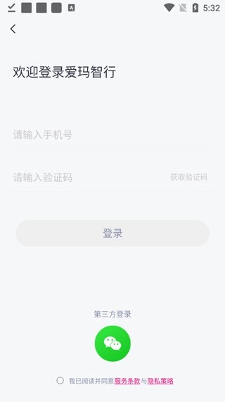 1. 第一步,打开已安装的爱玛出行,点击主页面的登录按钮。