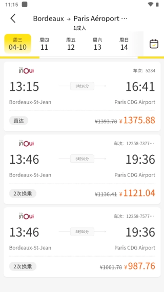 4、选择出行时间,进行筛选