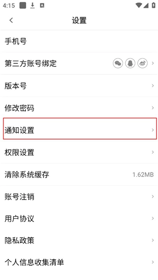 3、然后设置界面点击通知设置;