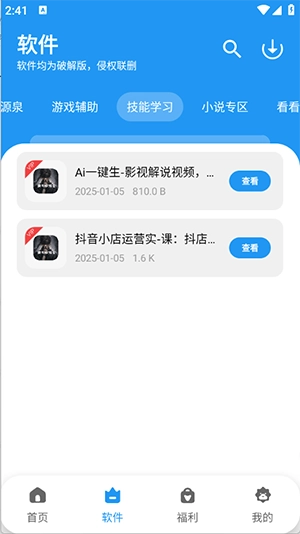 1、首先完成安装,进入“软件”页面后,会看到包含影视类、小说类以及漫画类等内容。