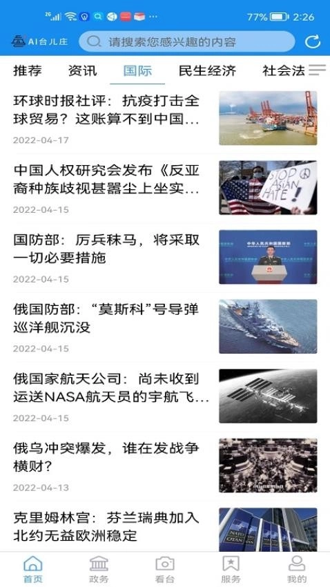 1. 本地新闻:聚焦台儿庄地区,涵盖时政、社会事件以及民生问题等方面的报道。