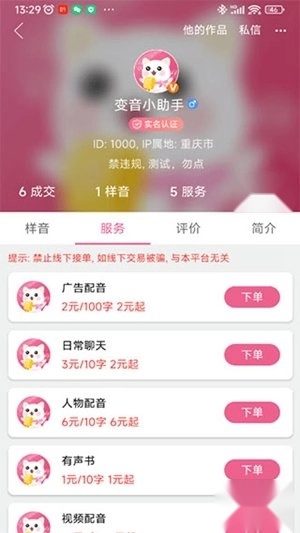 1、在平台上,可查看各式各样丰富的服务,能高效领略全面至极的配音服务内容。