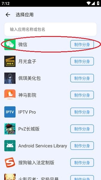 第一步需制作分身,打开比翼多开这个应用后,点击界面上的“添加分身”选项。