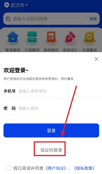 跳转至登录界面后点击验证码登录;