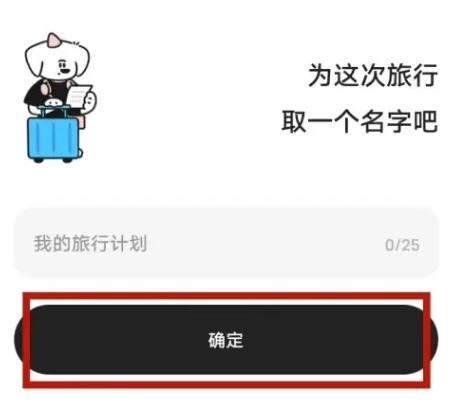 3.添加页面,输入计划行程名称,点击确定