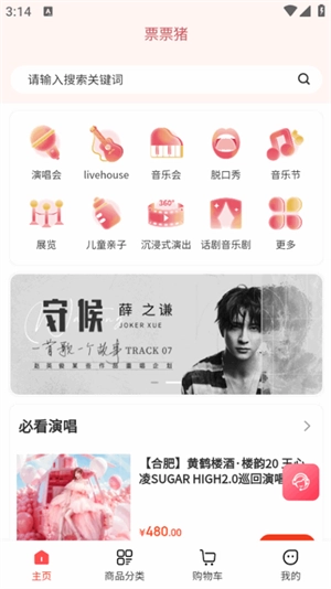 2、涵盖音乐会、话剧、演唱会等各类演出形式,全方位满足不同用户的需求。