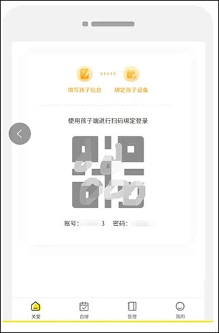 2. 新建操作完成后,系统将自动生成孩子绑定码以及账号密码,家长能够选择通过扫码登录,或者使用账号密码登录。