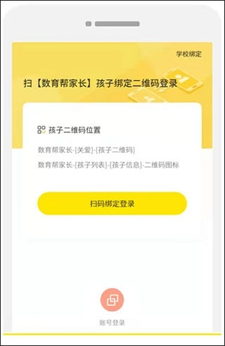 3、拿出孩子的手机,打开【数育帮孩子】应用,在界面中找到并点击扫码绑定登录的入口。