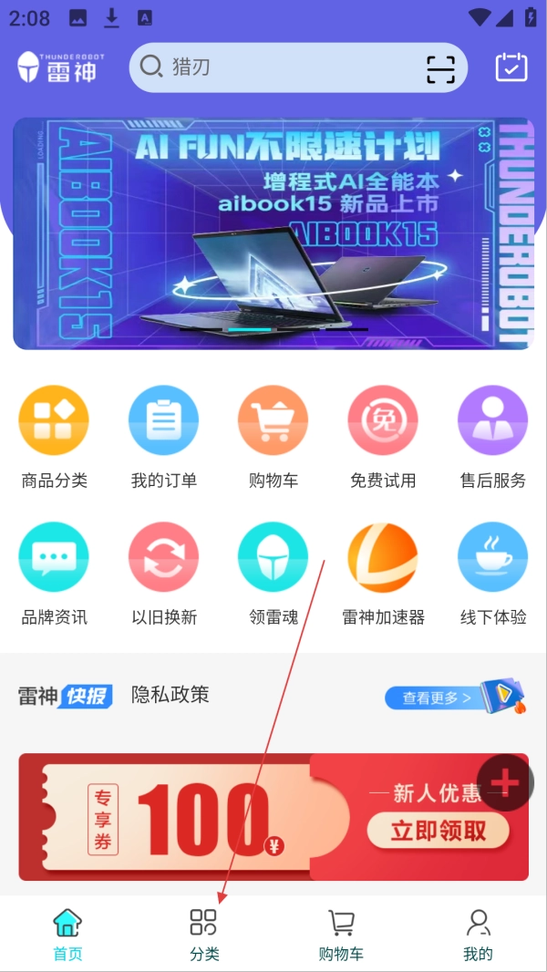 1. 轻点底部导航栏中的【分类】按钮,即可进入商品分类页面。
