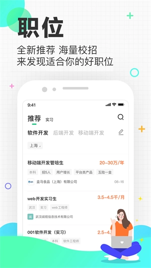 应届生求职网,一路相伴大学生从校园迈向社会,全力助推大学生入职名企、收获高薪!速来应届生求职网,寻觅专属于年轻人的理想工作!