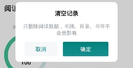 3、点击确认,操作会删除阅读数据,但书摘和书评等内容不会受到影响